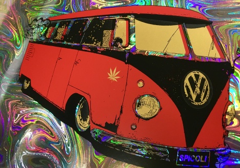 18×12″, 3 color screenprint on foil Signed and numbered. Edition size: 20 purchase: http://mattdye.com/products/spicolis-bus